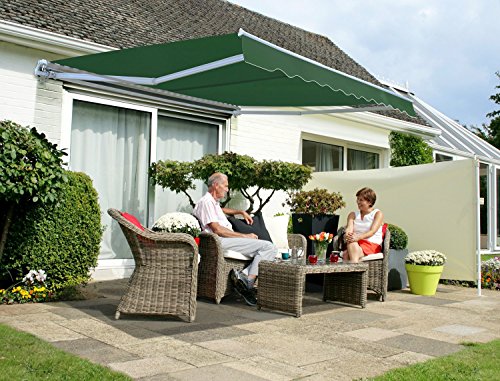 Sie haben eine stabile und dennoch leichte Metallrahmen. mit pulverbeschichteten Aluminium Arme. Sie lassen sich leicht mit Hilfe der Kurbel auf der linken Seite ausgefahren und zurückgezogen werden. Sie können die Markise so viel oder so wenig Exit verwenden, wie Sie möchten, bis zur maximalen Ausdehnung der Breite. Die speziell konstruierten elliptischen Arme können in ihrer Neigung verstellt werden, aus nahezu horizontal zu einem relativ steilen Winkel von etwa 40 Grad. Die vordere Aluminiumstange sorgt dafür, dass das Gewebe gleichmäßig hängt.