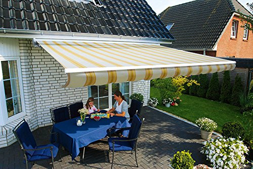 Die Halbkassettenmarkise schützt gegen das Wetter ideal. (Pulverbeschichtet weiß)