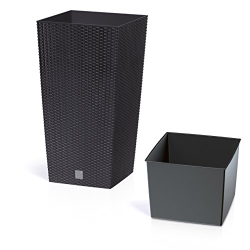 Hier bieten wir eine stilvolle Blumen Rattan Optik, optische wird.Der fürIhren ein großer Eyecatcher sein Wohn- oder Eingang Blumentopf wird mit einem Kunststoff einsetzen, so müssen Sie nicht so viel Boden für die Bepflanzung. Da der Blumentopf aus UV-stabilem Kunststoff, ist es geeignet für den Innen- und Außenbereich. Abmessungen 32 x 32 x 61,5 cmFarbe Anthrazit Material PP Kunststoff 25 cm Kapazität Einsatz ca. 49 LiterKunststoffvase mit Einsatz 49 l
